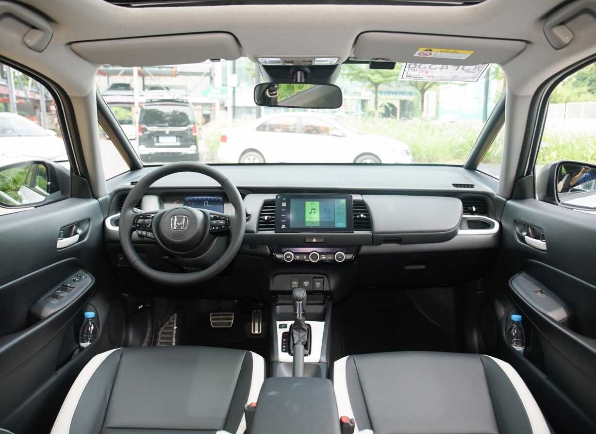 而飛度的內(nèi)飾以黑色為主調(diào),并且使用白色進行點綴,讓車內(nèi)不顯得沉悶。中控臺采用經(jīng)典的"T"型設計,分區(qū)明確且布局合理。多功能方向盤采用兩輻式設計,外圈皮質(zhì)包裹,握感舒適。7英寸全液晶儀表盤內(nèi)容顯示清晰,8英寸懸浮式中控屏配備旋鈕和物理按鍵,操作便捷。運動風格座椅采用仿皮材質(zhì),內(nèi)部填充物厚實,乘坐舒適。主駕駛位可手動6向調(diào)節(jié),副駕駛位可手動4向調(diào)節(jié),后排座椅支持比例放倒,提供超大置物空間,滿足日常家用和旅行需求。