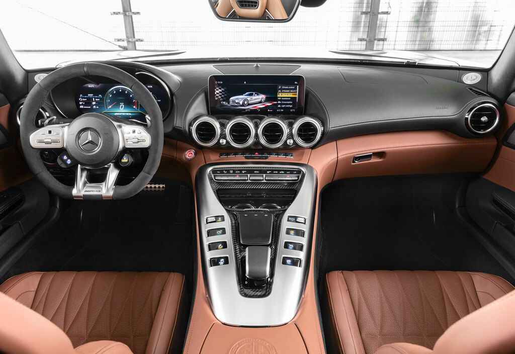 內(nèi)飾設(shè)計(jì)質(zhì)感很強(qiáng),操控臺(tái)整體布局很合理,按鍵按下去的時(shí)候也很有質(zhì)感,中控設(shè)計(jì)還是以駕駛員為主,空間只能說(shuō)夠用,滿(mǎn)足一兩個(gè)人出行是沒(méi)有問(wèn)題的,乘坐感受比較硬朗,畢竟也是走運(yùn)動(dòng)路線(xiàn)。顏色方面,AMG GT推出的外觀(guān)顏色有曜巖黑、磁鐵黑、寶石藍(lán)、啞光寶石藍(lán)、海夜藍(lán)等,與之搭配的內(nèi)飾顏色有黑色+栗色、黑色+巖漿灰色、黑色+巖漿灰、黑色+馬鞍棕色、黑色+松露棕色等。